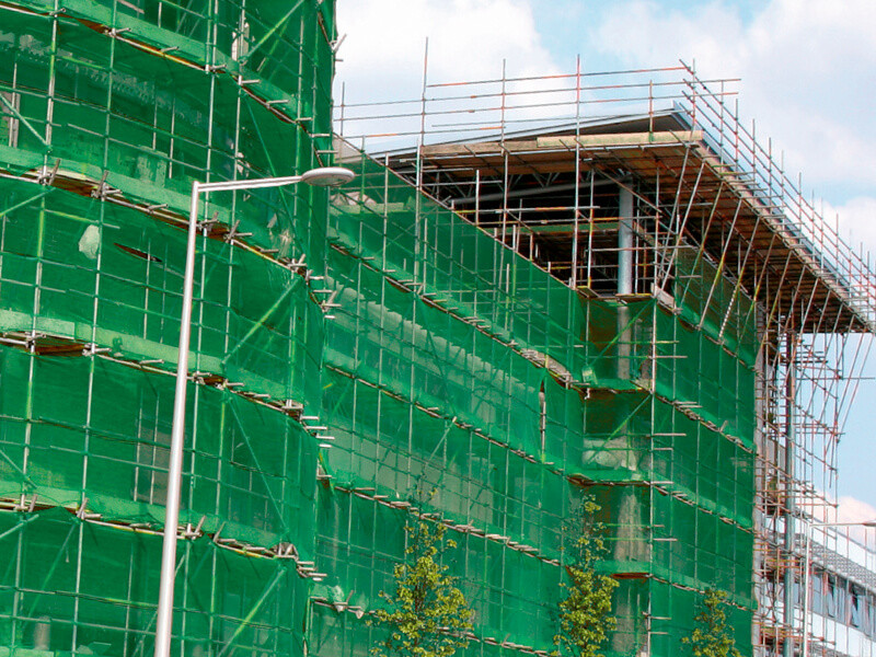 Az oldalfalakat védő rendszer tetőkön vagy állványokon. A telepítéshez elegendő ráhúzni az egyes hálószemeket az állvány csövére, de használni lehet az (opcionális) rögzítő pántokat is. Kérés esetén többféle színben (piros, kék, fehér) kapható.